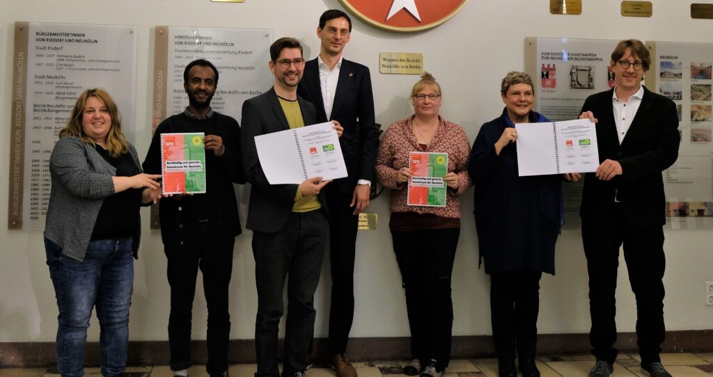 Am 1. November 2021 haben Bündnis 90/Die Grünen und die SPD Neukölln eine Zählgemeinschaftsvereinbarung unterzeichnet und damit in der Bezirksverordnetenversammlung (BVV) den Weg für eine rot-grüne Zusammenarbeit in der Wahlperiode 2021 bis 2026 geebnet.